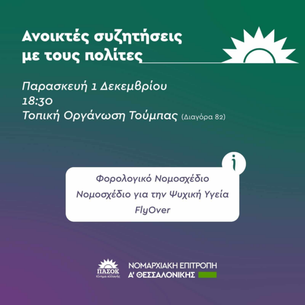 Εγκαινιάζεται ένας νέος κύκλος διαβούλευσης, συζήτησης και ενημέρωσης μέσω των τοπικών οργανώσεων με τα μέλη και τους φίλους του κόμματος, ενώ η Νομαρχιακή Επιτροπή Α’ Θεσσαλονίκης θα μιλήσει και για το φορολογικό νομοσχέδιο, το νομοσχέδιο για την ψυχική υγεία και το Fly Over.