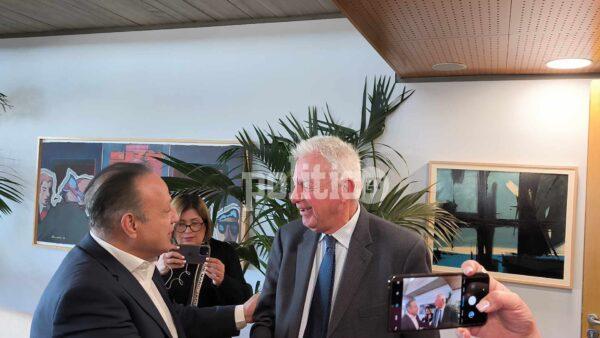 Αρχικά ο κ. Αγγελούδης ευχαρίστησε τον κ. Πικραμμένο για την παρουσία του λέγοντάς του πως είναι η πρώτη επίσημη επίσκεψη που δέχεται στο δημαρχείο Θεσσαλονίκης.