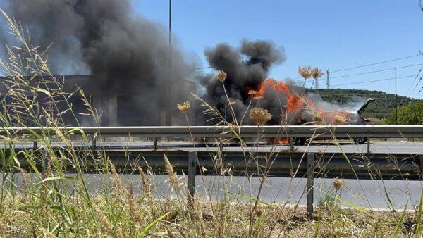 Πυρκαγιά ξέσπασε σε ένα όχημα στην ΕΟ Θεσσαλονίκης – Μουδανίων σήμερα το μεσημέρι.