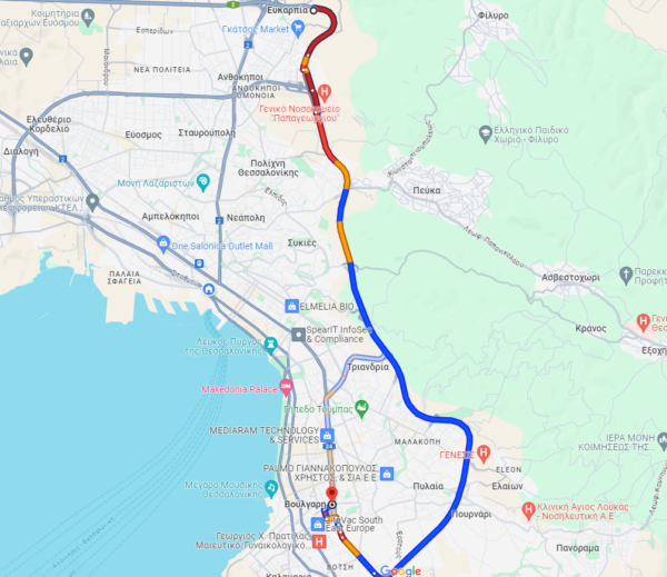 Όπως θα δείτε και στις παρακάτω φωτογραφίες, υπάρχει αυξημένη κίνηση στον περιφερειακό κυρίως στο ύψος του νοσοκομείου Παπαγεωργίου με κατεύθυνση προς ανατολικά, ενώ όσον αφορά το κέντρο η κατάσταση μοιάζει να είναι και εκεί αρκετά δύσκολη.