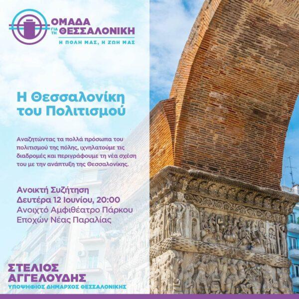 Η «Ομάδα για την Θεσσαλονίκη» και ο υποψήφιος δήμαρχος Στέλιος Αγγελούδης διοργανώνουν εκδήλωση – ανοιχτή συζήτηση την Δευτέρα 12 Ιουνίου στις 20.00 στο Ανοιχτό Αμφιθέατρο Πάρκου Εποχών Νέας Παραλίας (στο ύψος της Σχολής Τυφλών) με θέμα τη Θεσσαλονίκη του Πολιτισμού.