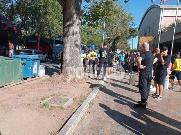 Μερικοί εξ αυτών έχουν συγκεντρωθεί στην πλατεία του Λευκού Πύργου φωνάζοντας συνθήματα για την ομάδα τους, λίγες ώρες πριν την πρώτη σέντρα της αναμέτρησης. Αργότερα θα κατευθυνθούν μαζικά στην Τούμπα για να παρακολουθήσουν το ματς.