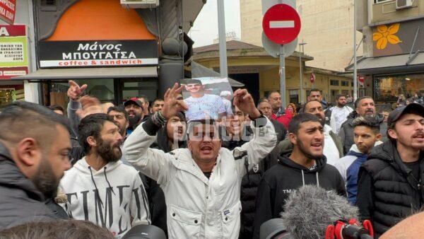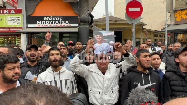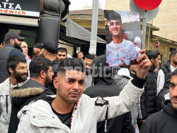 Συγγενείς και φίλοι, κρατώντας φωτογραφίες του 16χρονου μαζί με το παιδί του, φωνάζουν πως «δεν ήταν τα 20 ευρώ» και πως «αν δεν γινει διαδικασία με δικαιοσύνη, αν δεν προφυλακιστεί δεν ξέρουμε κι εμείς τι θα γίνει».