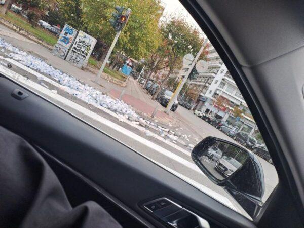 Τα σκουπίδια είχαν κατακλύσει όλους τους δρόμους από όπου πέρασαν οι δρομείς του διεθνούς Νυχτερινού Ημιμαραθωνίου με αποκορύφωμα την παραλιακή λεωφόρο Μεγάλου Αλεξάνδρου από όπου πέρασε ο μεγαλύτερος όγκος των δρομέων.