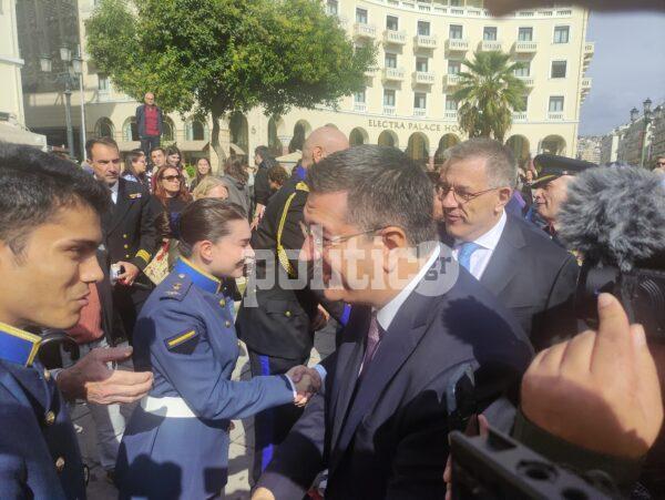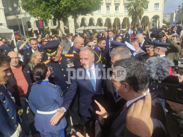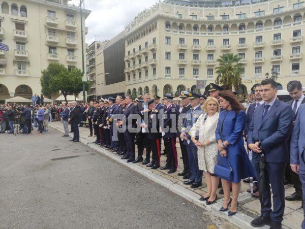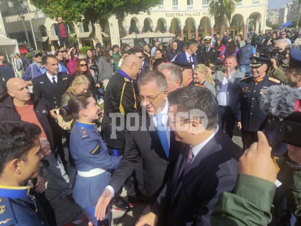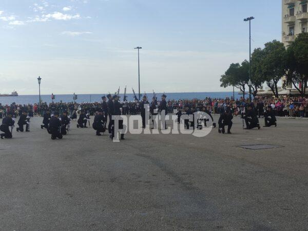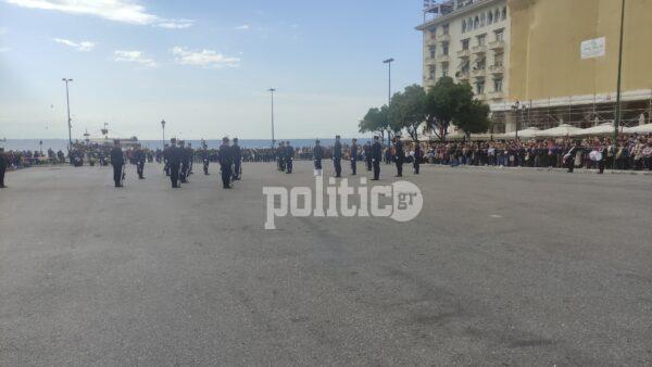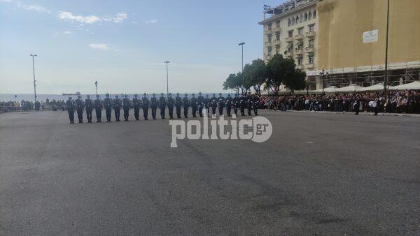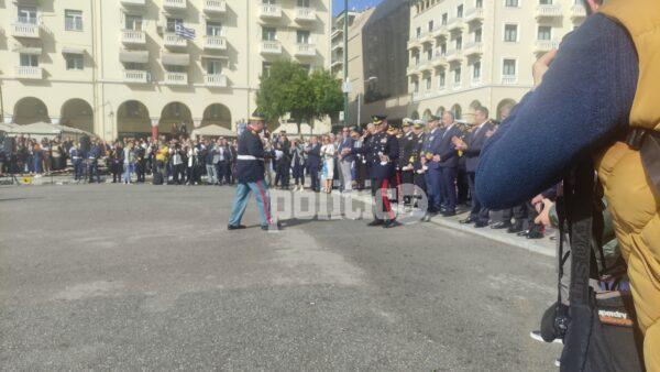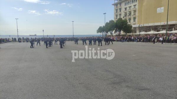 Γύρω στη 1 το μεσημέρι η διμοιρία επιδείξεων της ΣΣΑΣ έκανε την εμφάνισή της με εντυπωσιακό τρόπο στην Πλατεία Αριστοτέλους, με το κοινό αμέσως να ξεσπά σε χειροκροτήματα.