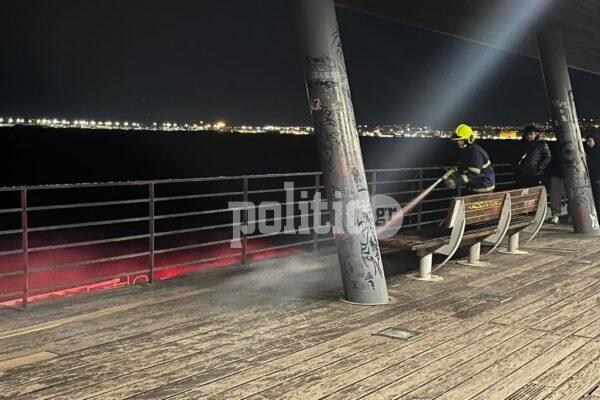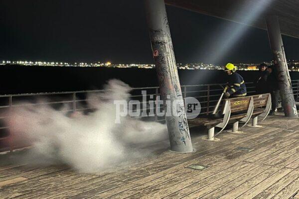 Φωτιά μικρής έκτασης έκαψε μέρος του ξύλινου μπαλκονιού του αντλιοστασίου της ΕΥΑΘ στη Νέα Παραλία.