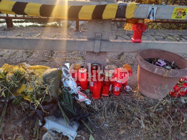 Στο σημείο μάλιστα θα δει κανείς πληθώρα πλαστικών που έμειναν μετά τη σφοδρή, καθώς φαίνεται, σύγκρουση, ενώ χαρακτηριστικές είναι οι φανέλες της αγαπημένης ομάδας του 19χρονου που έχουν κρεμαστεί από φίλους και συγγενείς του.