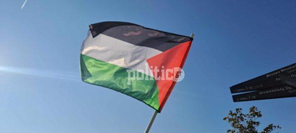 «Η Θεσσαλονίκη λιμάνι των λαών και όχι ορμητήριο των Ιμπεριαλιστών» και «Λε λε λευτεριά λευτεριά στην Παλαιστίνη» είναι μερικά από τα συνθήματα που φωνάζουν οι διαδηλωτές.