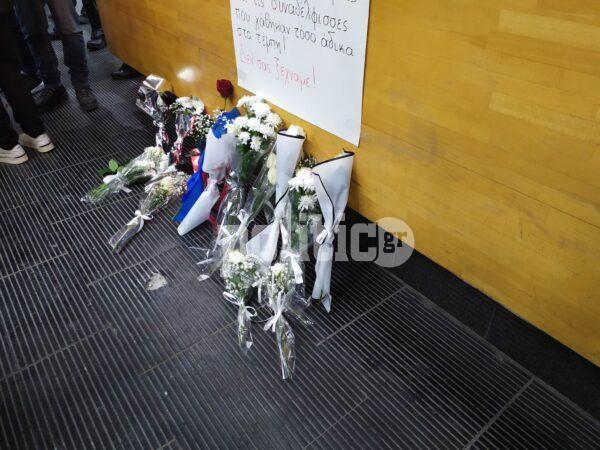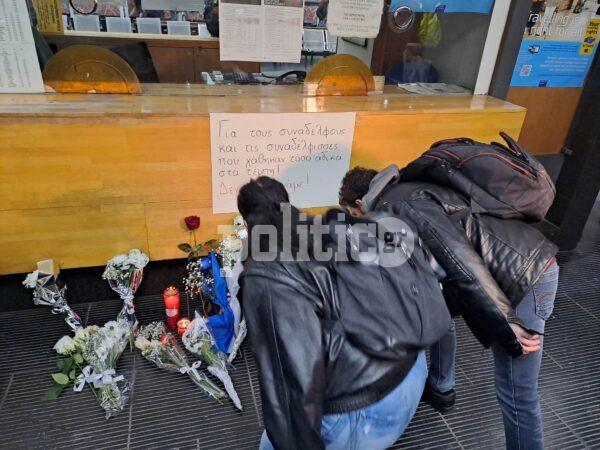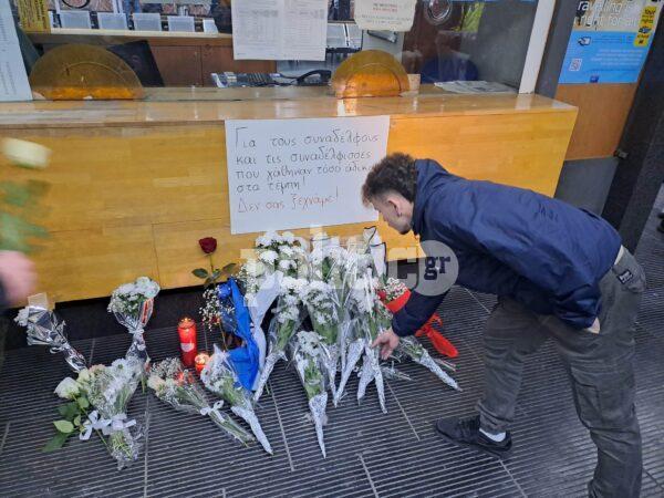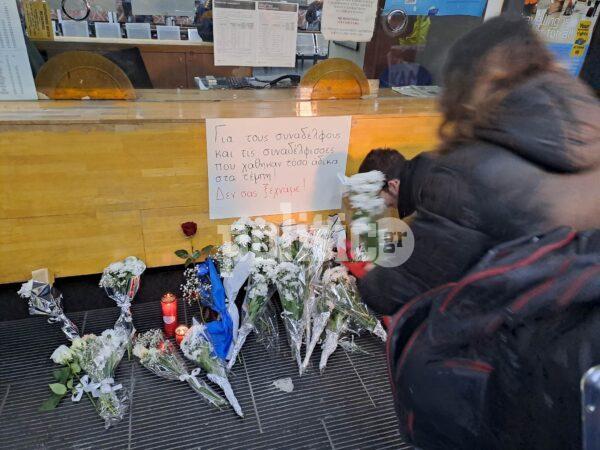 Να αναφερθεί πως οι διαμαρτυρόμενοι έχουν καταθέσει εντός του σταθμού λουλούδια ενώ ανάβει και ένα κεράκι στη μνήμη των θυμάτων.