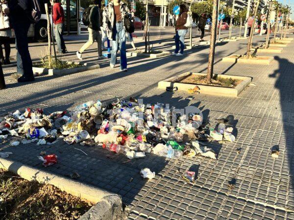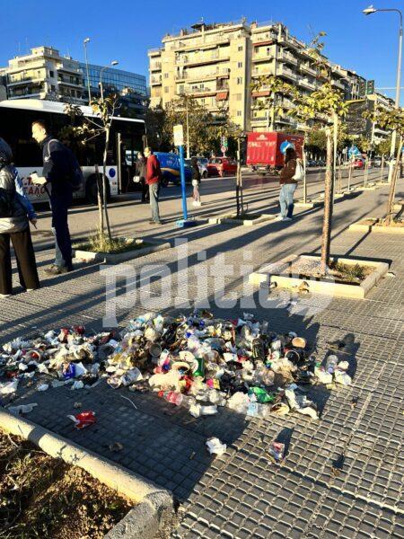 Μία βόλτα το πρωί της Πέμπτης (9/11), σε ώρα που ακόμα δεν έχει περάσει πολύς κόσμος, είναι ικανή να αποτυπώσει το μεγάλο πρόβλημα που αντιμετωπίζει εδώ και μεγάλο χρονικό διάστημα η Θεσσαλονίκη. Σκουπίδια πεταμένα έξω ακριβώς από την κεντρική είσοδο του ΟΣΕ, επί της οδού Μοναστηρίου, σε ένα σημείο από το οποίο καθημερινά περνούν χιλιάδες πολίτες.