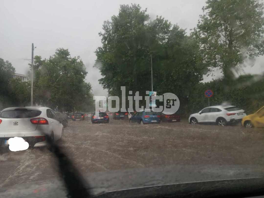 Όπως μπορείτε να δείτε και στις παρακάτω φωτογραφίες, κεντρικοί οδικοί άξονες της Θεσσαλονίκης έχουν γεμίσει νερό, με την κυκλοφορία των οχημάτων να πραγματοποιείται με μεγάλες δυσκολίες. Οι οδηγοί οφείλουν να έχουν αυξημένη την προσοχή τους, καθώς η καταιγίδα -κατά διαστήματα χαλαζόπτωση- συνεχίζεται.