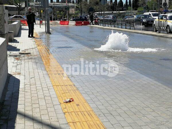 Συγκεκριμένα, στην οδό Λαγκαδά, κοντά στη συμβολή με τη Δαβάκη και την Ακριτών, μπροστά από την Αγία Βαρβάρα, έσπασε σωλήνας της ΕΥΑΘ, με αποτέλεσμα το οδόστρωμα να καλυφθεί με νερό.