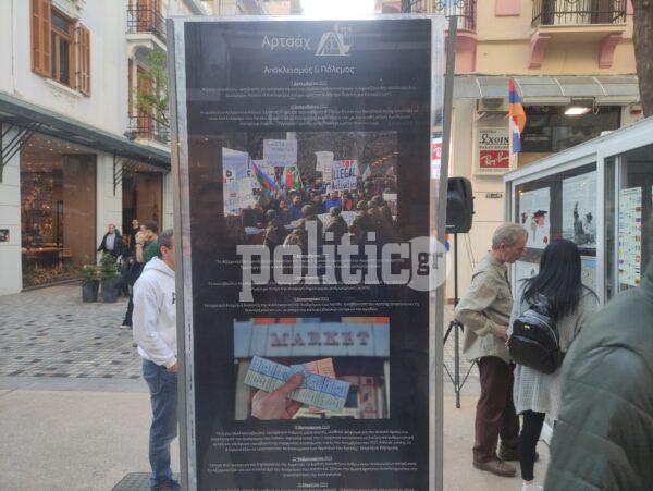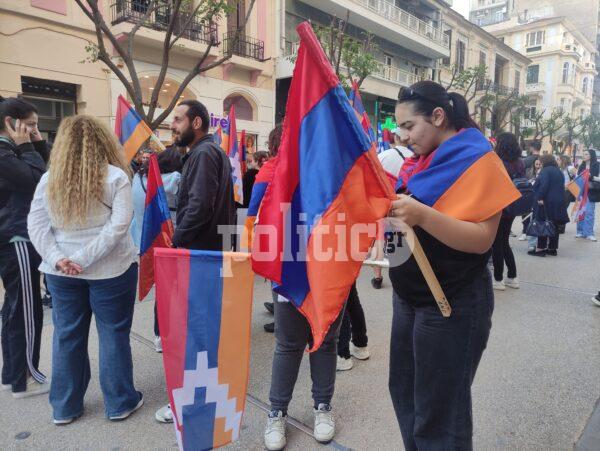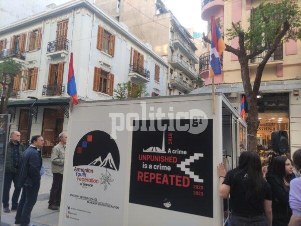 Η συγκέντρωση πραγματοποιήθηκε στην οδό Αγίας Σοφίας, όπου είχε στηθεί και περίπτερο, με αρμενικές σημαίες και πληροφορίες, τόσο για τη Γενοκτονία του 1915, όσο και για τα πρόσφατα γεγονότα στο Αρτσάχ.