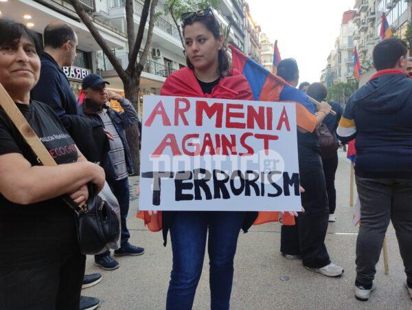 Με το σύνθημα «το αίμα κυλάει, δικαίωση ζητάει» οι Αρμένιοι κάτοικοι της Θεσσαλονίκης διαδήλωσαν στο κέντρο της πόλης για τη συμπλήρωση 109 ετών από τη Γενοκτονία του λαού της χώρας από τους Τούρκους.