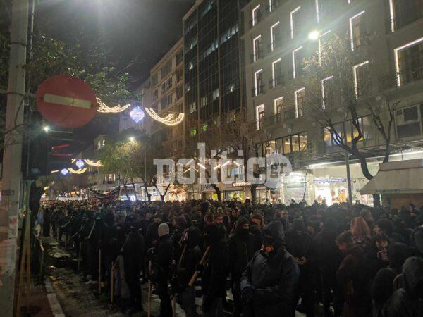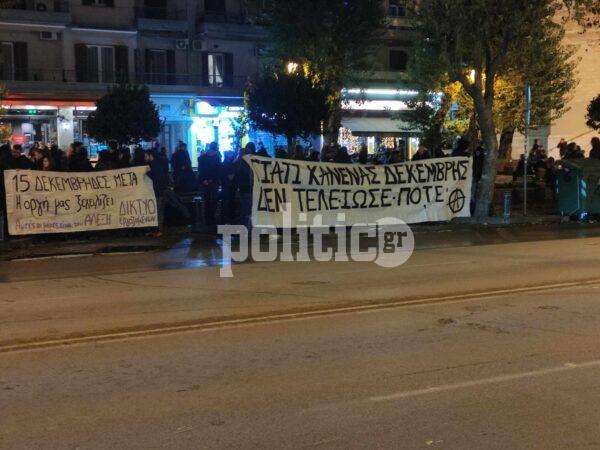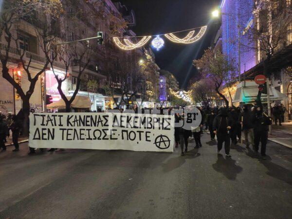 Στη συνέχεια ακολούθησε πορεία σε κεντρικούς δρόμους της πόλης, όπου ακούστηκαν πολλά συνθήματα κατά της εξουσίας και της αστυνομίας, αλλά και υπέρ του αδικοχαμένου Αλέξη.