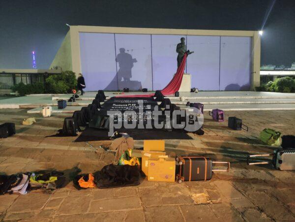 Το κάλεσμα είχε δοθεί από τις προηγούμενες ημέρες, ενώ σήμερα βαλίτσες τοποθετήθηκαν μπροστά από το άγαλμα του Αριστοτέλη. Παράλληλα, υπήρχε μεγάλο μαύρο πανό με τα ονόματα των φοιτητών του ΑΠΘ που σκοτώθηκαν στο δυστύχημα των Τεμπών. Το δρώμενο ξεκίνησε με προβολή βίντεο, το οποίο αναπαριστούσε τη σύγκρουση των δύο αμαξοστοιχιών, ενώ τηρήθηκε και ενός λεπτού σιγή. Στη συνέχεια, ακούστηκε το τραγούδι της Φραντζέσκα Μπέζα, η οποία έχασε τη ζωή της στα Τέμπη, στις 28 Φεβρουαρίου 2023. Αμέσως μετά, ακούστηκαν τρία ακόμα τραγούδια, “Στην κοιλάδα των Τεμπών” του Θανάση Παπακωνσταντίνου, “Ίσως τα πιο όμορφα χαθήκανε μ’ εσάς” του B.D. FOXMOOR και “Θα αργήσω άποψη” των Κοινών Θνητών.