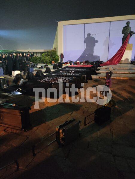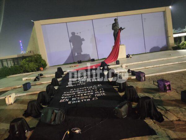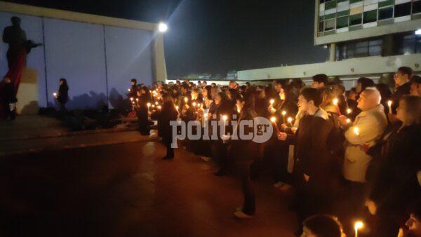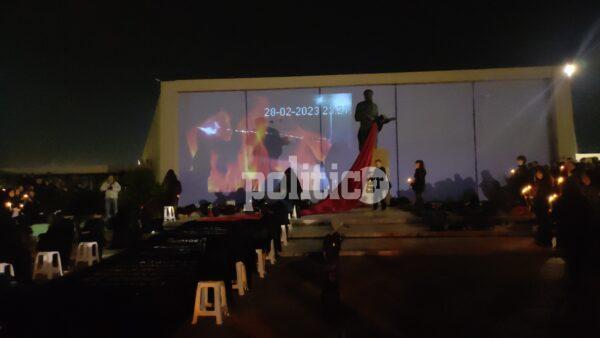 Στο ΑΠΘ πραγματοποιήθηκε αργά το βράδυ της Τετάρτης (28/2) εικαστικό δρώμενο για την τραγωδία των Τεμπών, έναν χρόνο μετά το γεγονός που συγκλόνισε όλο τον πλανήτη.