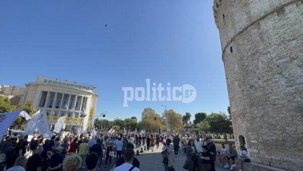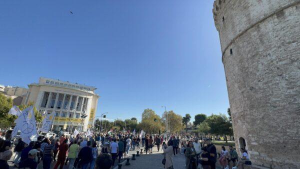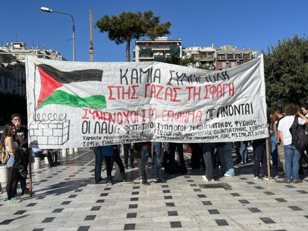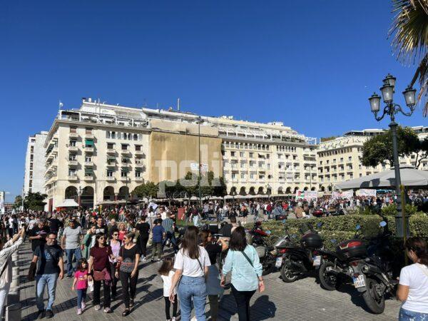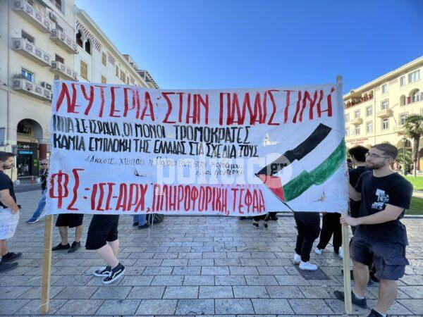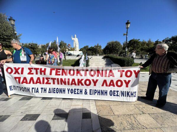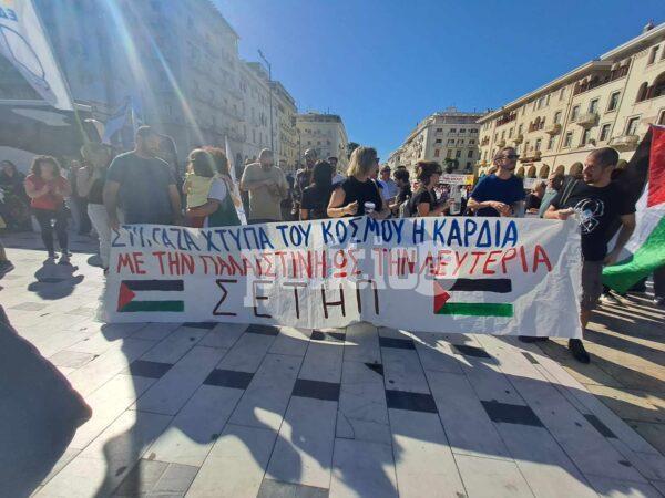 Μεγαλειώδης συλλαλητήριο αλληλεγγύης στον λαό της Παλαιστίνης πραγματοποιούν αυτήν την ώρα εργατικά σωματεία και φορείς στη Θεσσαλονίκη.