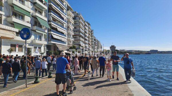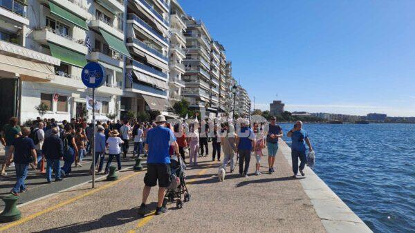 Η πορεία κινείται κάθετα στον άξονα της οδού Αριστοτέλους, με μέτωπο προς την παραλία.