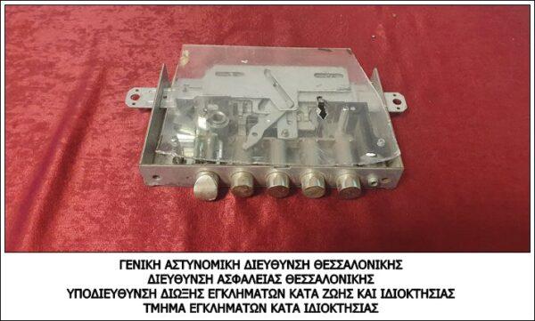 - πλήθος κλειδιών θυρών οικιών διαφόρων τύπων και μαρκών με εμφανείς εξωτερικές παραποιήσεις – παρεμβάσεις, αυτοσχέδιων διαρρηκτικών εργαλείων διαφόρων κλειδαριών και τύπων, μηχανισμών κλειδαριών θωρακισμένων θυρών, ομφαλών θυρών,