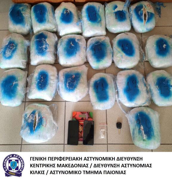 Σε έρευνα του οχήματος που οδηγούσε βρέθηκαν στο χώρο των αποσκευών κατασχέθηκαν πάνω από 22 κιλά κάνναβης.
