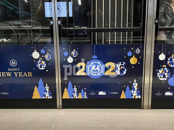 Ντυμένο γιορτινά επέστρεψε το μετρό, με τις διάφανες προστατευτικές τζαμαρίες μπροστά από τις εισόδους των συρμών να έχουν καλυφθεί από χριστουγεννιάτικα μηνύματα και ευχές για χαρούμενο 2026.