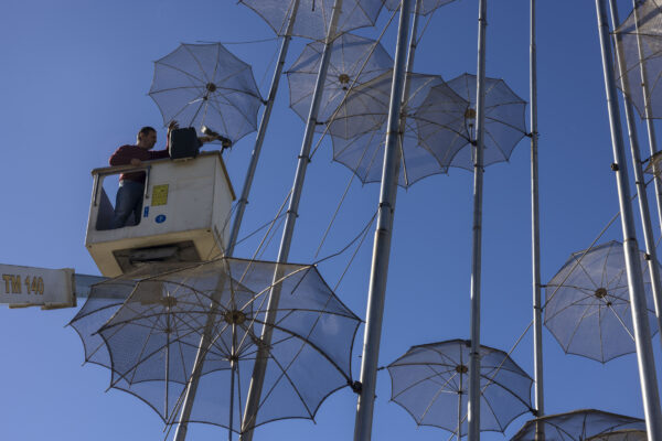 «Ξηλώνονται» για να υποβληθούν σε επισκευή δεκατρείς από τις «Ομπρέλες» του γνωστού, αγαπημένου και πολυφωτογραφημένου γλυπτού του Γιώργου Ζογγολόπουλου, που βρίσκεται στη Νέα Παραλία της Θεσσαλονίκης.