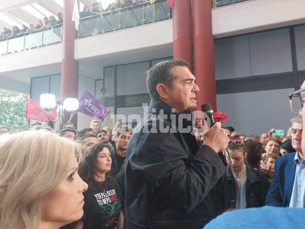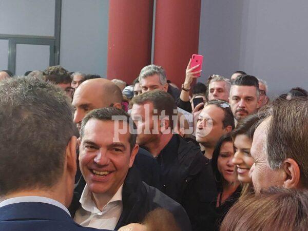 Υπό βροχή κατέφτασε ο αρχηγός της Αξιωματικής Αντιπολίτευσης στα γραφεία του ΣΥΡΙΖΑ – Προοδευτική Συμμαχία στην ανατολική πλευρά της πόλης στο πλαίσιο προγραμματισμένης του εκδήλωσης γύρω στις 20.00 το απόγευμα.